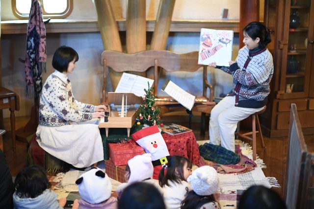 今回のあけぼの子どもの森公園で12/22に開催した、「音楽と暖炉をたのしむ 森のおはなし会」は、2冊のクリスマスの絵本を読み、それに合わせて音楽をつける、音楽付きの読み聞かせみたいな会でした。