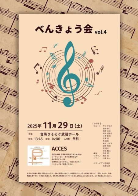 先日、大好きな音降りそそぐ武蔵ホールにて、べんきょう会が開催されました。